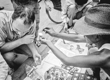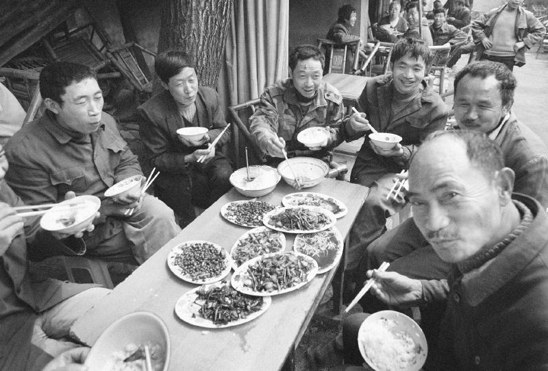 还是回到我们的老照片上吧。你现在看到的片子,都是本报摄影记者在街头捡来的边角余料。跟上一期不同,这些图片还原了当时的场景,讲了点故事。你看那个打光胴胴悬空睡在椅子上的哥老倌,他的肚子多么博大精深而低调奢华;那个打手机的妹儿仰起脑壳笑得哦,可能是接到星星外的都教授的电话了,吵得身后看报的大爷嘀咕道:喳喳哇哇的,幸得好不是我儿媳妇哦……