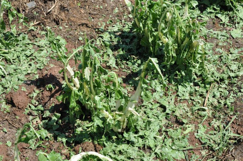 简阳市镇金镇汪水乡村民陈明华说,昨日凌晨零时许,大风冰雹天气突然袭来,“指头大的冰雹下了40多分钟,最大的有鸡蛋大。”冰雹过后,陈明华家10多亩农作物受损严重,两间瓦房的瓦片也大面积损毁。
