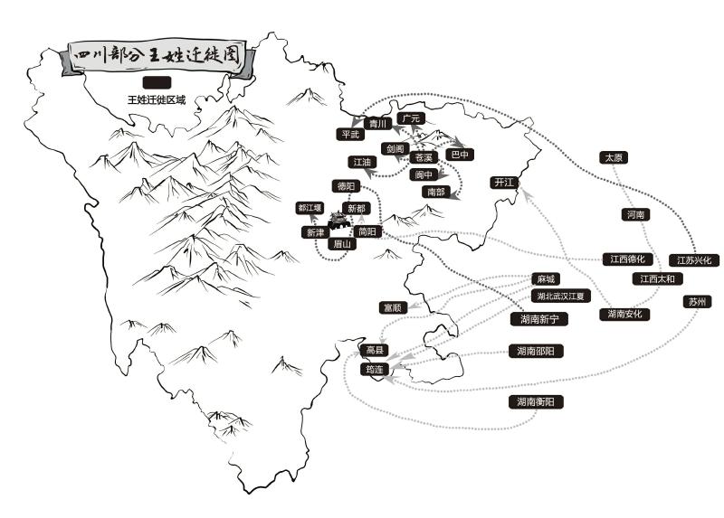 王姓不单纯是出自某国、某地、某人的后裔,而是一个源头众多、氏族纷繁的姓氏,多以爵为姓,正如《姓氏略考》所云:“大抵子孙以王者之后。”四川这么多姓王的人,他们拥有的绝不是一个祖先。