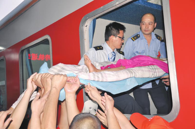32名伤员中有8名伤势较轻,24名伤势较重,他们主要来自鲁甸县县城、龙头山镇等地,多数头部受伤、四肢骨折,年龄最大的71岁,最小的3岁。“救6”次专列列车长唐蔺君告诉记者,为更好照顾伤员,专门对列车进行改造,将部分车窗、中铺临时拆掉,方便接受伤员、扩展居住空间,并为每名伤员提供了便盆、消毒液。