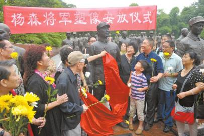 9月3日上午,小雨霏霏。在位于成都市安仁镇的建川博物馆内,进行着一 场 特 殊 的“ 欢 迎 仪式”。潘文华和杨森两位抗日川军将领的纪念雕塑,在这一天,被安放在了《中国壮士1931-1945》纪念雕塑群里,从这一天起,他们将与其他200多名战士日夜站在一起,看着这片他们为之奋斗过的土地。潘文华儿子潘锡仁、潘夕潮、王宇坤等亲属和杨森儿子杨新人、杨南明等亲属专程前来参加揭幕仪式,并向博物馆捐献了文物。