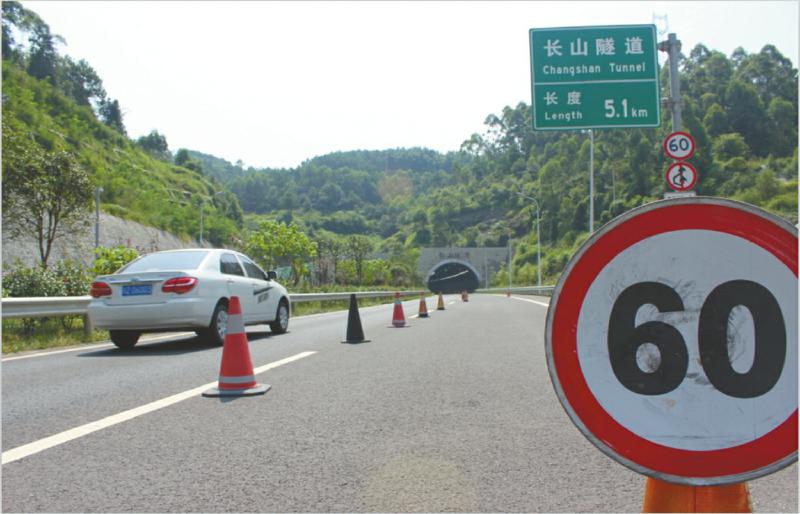 针对长山隧道事故频发的情况,7月9日,自贡交警部门将原本限 速 80km/h 的 隧 道 限 速 到60km/h,并用隔离桩对隧道进行分割,仅留一条车道通行以强制车辆减速行驶,并加强路面巡逻提高管控力度。