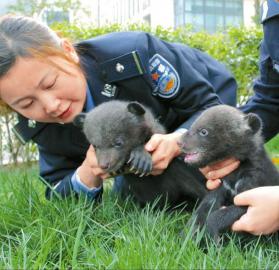 3月19日晚,青川县森林公安在广甘高速四川收费站出站口挡获一辆可疑出租车,从车上搜出两只2个月大的小黑熊。20日,它们被送往唐家河自然保护区蔡家坝保护站,由工作人员俞丹莉负责照料,她成了小黑熊的“贴身保姆”。逐步野化训练预计4个月后放归