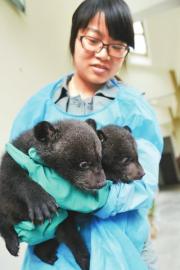 3月19日晚上,青川县森林公安在广甘高速四川收费站出站口挡获一辆可疑出租车,从车上搜出两只仅有2个月大的小黑熊。20日一大早,它们就被送往了唐家河自然保护区蔡家坝保护站,“两只都是雌熊,刚送来时还是比较健康,只是有些怕生,时常发出‘嗷嗷’的叫声,”俞丹莉说,经过十多天的相处,这两只小黑熊已经把她当成妈妈了。俞丹莉也能够清楚地分辨出模样相似的小黑熊,并取名为“蹦擦擦”和“噔噔呛”。