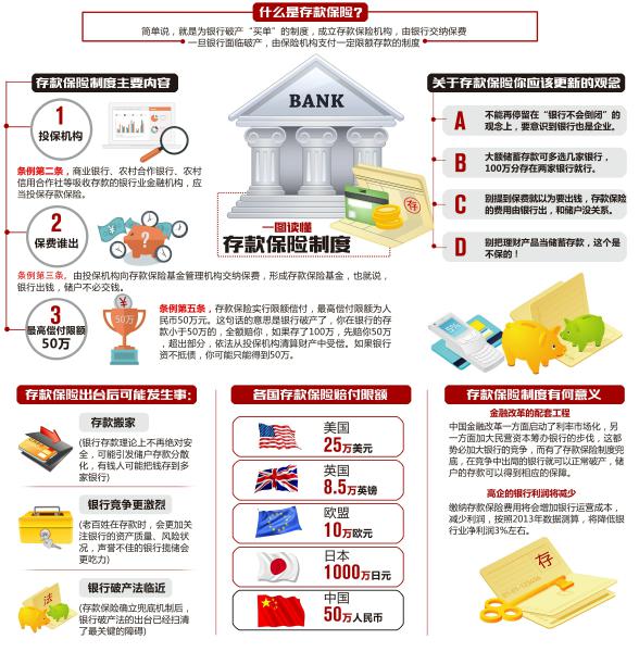 业内人士介绍,存款保险是指国家通过立法,设立专门的存款保险基金(保费由银行业金融机构交纳),当个别银行业金融机构经营出现问题时,依照规定对存款人进行偿付,保障存款人权益。目前,世界上已有110多个国家和地区建立了存款保险制度。