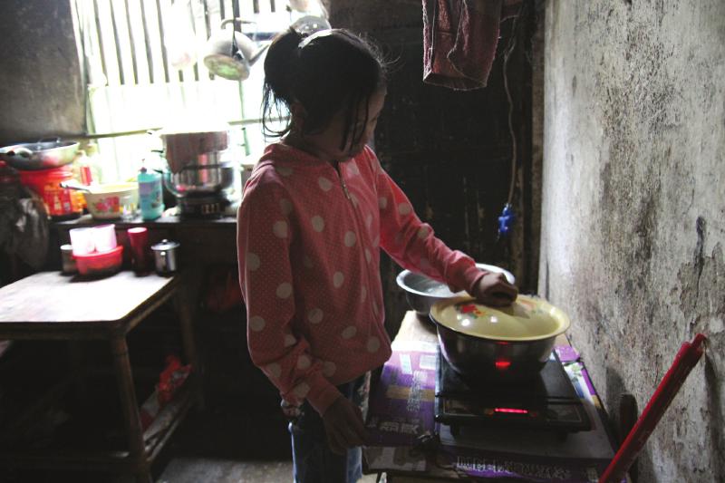 父亲工作较忙,照顾妈妈的重任便落在了李立英稚嫩的肩上。她每天早晨5点40分起床,给妈妈按摩、洗漱、做早餐,忙到7点半左右,给父亲把煮面的水烧好,才去上学。她的不忍