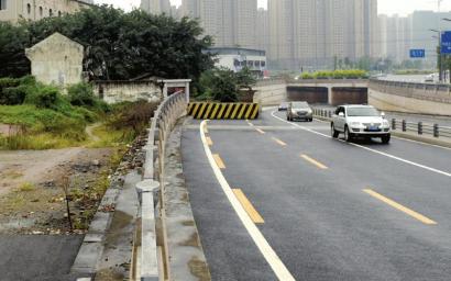 成都红星路南延线中和段进城方向下穿隧道出口的路障令不少车主头疼