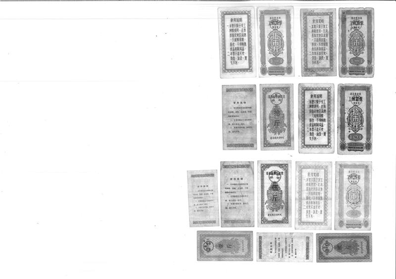 计划经济时期还有相关的一些票据,如糖票、烟票、酒票、布票、棉花票、蜂窝煤票、肉票、豆制品票等,还有只有春节才供应的黄花、芝麻、酥麻、木耳、花生等票证。