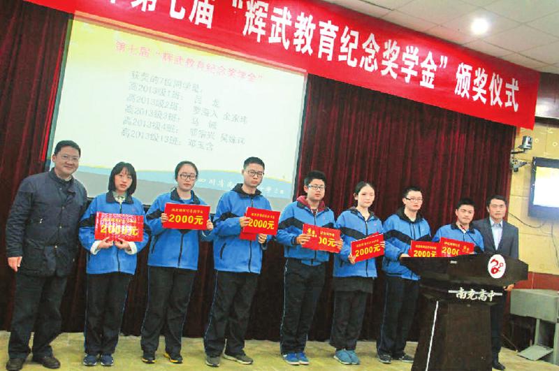 吕龙、罗海入、余家玮、马诚、邬宗兴、吴姝玮、邓玉含7名南高学获得第七届“辉武奖学金”,每人2000元。潘多加这样评价:“他们得到的不仅仅是一份奖学金,更多的是一份对他们的独特气质与眼光的肯定。从长远看,南高真正的骄傲将是这些有独立思想并改变世界的学子。”