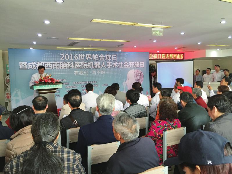 4月11日是世界帕金森病日。4月10日上午,四川省慈善总会联合成都西南脑科医院、成都西南脑科医学研究院共同举办了一场“有我们 再不帕”的2016世界帕金森日暨成都西南脑科医院机器人手术社会开放日主题活动。活动吸引了四川电视台、成都电视台、中新网、人民网、新华网等数十家媒体到场采访,近百名“帕”友应邀参加,增强大家对帕金森病的认识,并让大众了解目前治疗帕金森先进的机器人微创手术。
